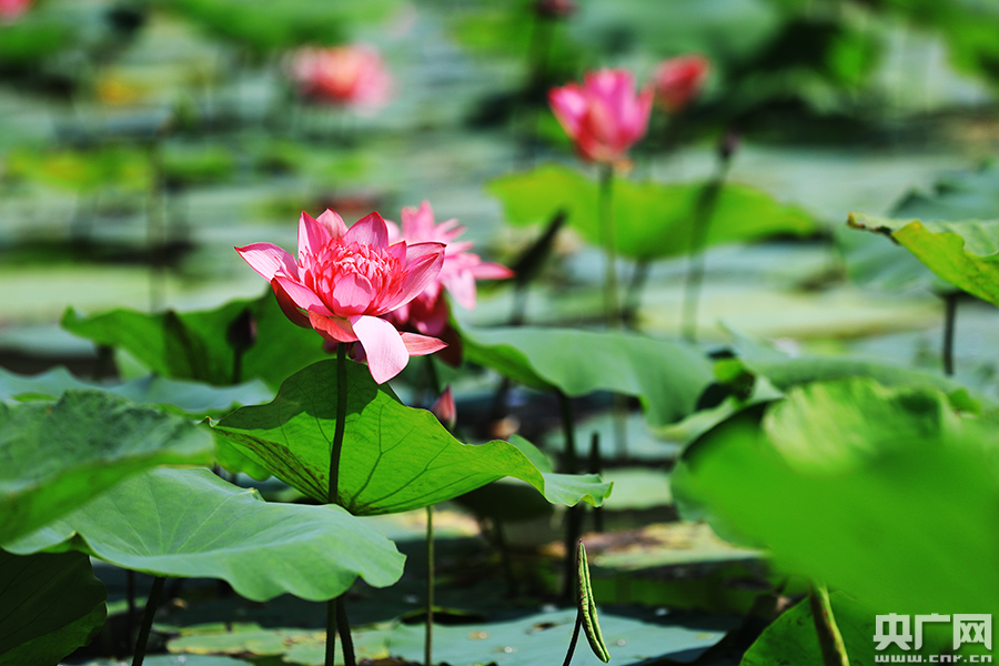 游客在南沙濕地觀賞荷花。(圖/央廣網(wǎng)記者石昊鑫 攝)
