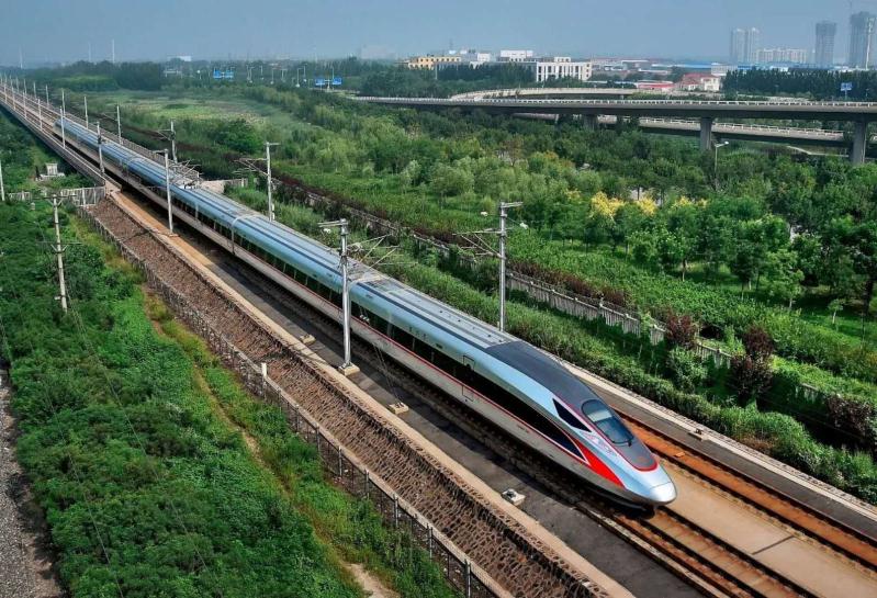 “復興號”奔馳在祖國廣袤的大地上,承載著中華民族偉大復興中國夢,承載著人民群眾對美好生活的向往,風馳電掣,勇往直前。