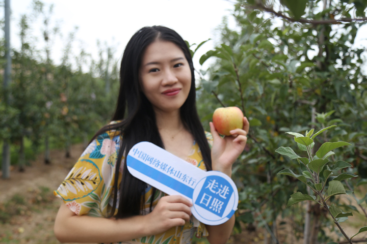 美女記者走進(jìn)山東豐沃集團(tuán)九五農(nóng)業(yè)現(xiàn)代林果示范園內(nèi)采摘水果