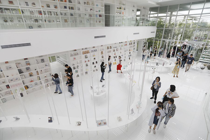 采訪團(tuán)記者走進(jìn)白鷺灣藝游小鎮(zhèn),在藍(lán)天白云映襯下,百畝青碧的荷塘迎風(fēng)輕曳,星星點(diǎn)點(diǎn)的荷花散發(fā)的清香更是讓人心曠神怡。沿著一條鵝卵石鋪成的小路往里走,迎面而來的是字里窗間書店。作為白鷺灣藝游小鎮(zhèn)一期工程的重點(diǎn)項(xiàng)目之一,在這里低頭,是文學(xué)的優(yōu)美,而抬頭,是窗間心曠神怡的自然美景。捧一本經(jīng)典,棲身角落,品味字里窗間的不同景色。