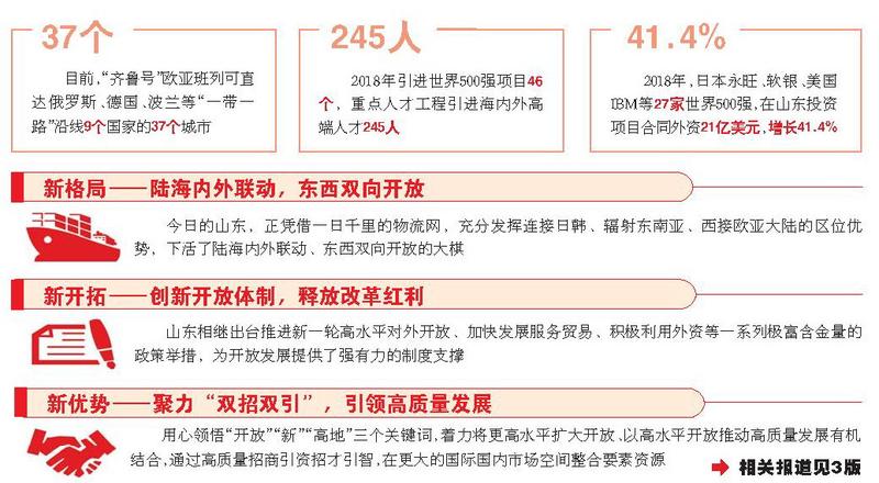 改革不停頓、開放不止步,這是中國經(jīng)濟(jì)社會(huì)發(fā)展的大邏輯。在深度參與國際分工,享受市場、技術(shù)、資本等開放紅利的同時(shí),山東相繼出臺(tái)推進(jìn)新一輪高水平對外開放、加快發(fā)展服務(wù)貿(mào)易、積極利用外資等一系列極富含金量的政策舉措,為開放發(fā)展提供了強(qiáng)有力的制度支撐。