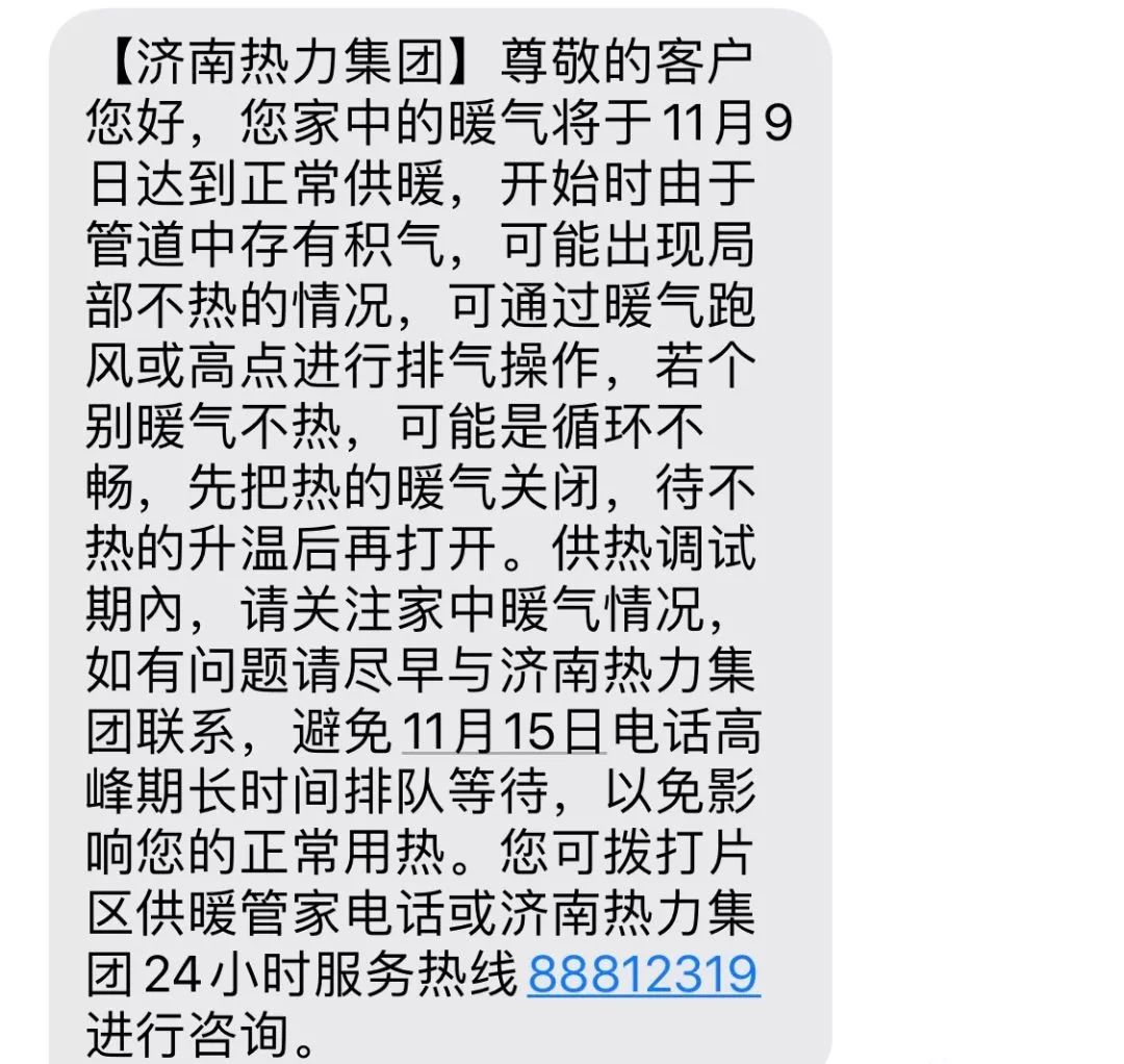 隨著試溫的開始,許多人也收到了熱力集團的提示短信。