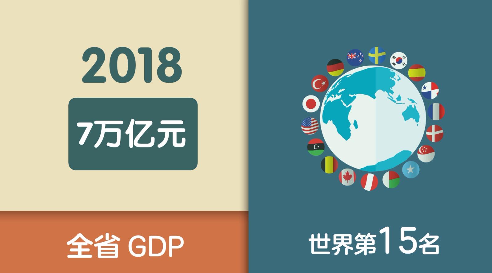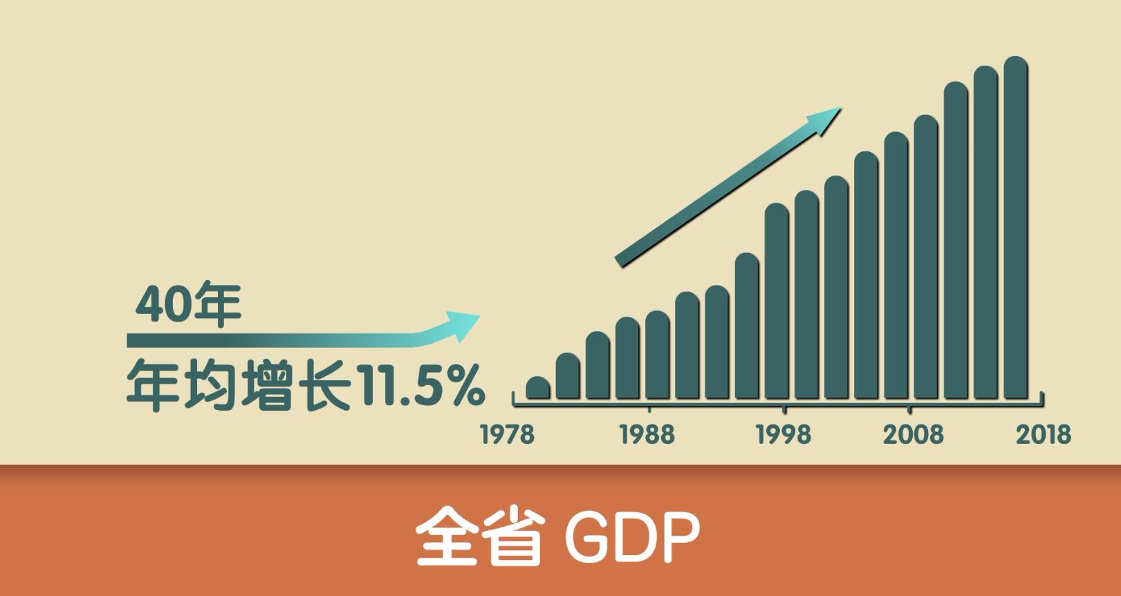40年來,全省的GDP年均增長達(dá)11.5%,已超過7萬億元,放到世界可以排到第十五名!人均GDP達(dá)到10790美元,地方財政收入年均增長12.4%,已突破6000億元,穩(wěn)穩(wěn)占據(jù)全國第三位。