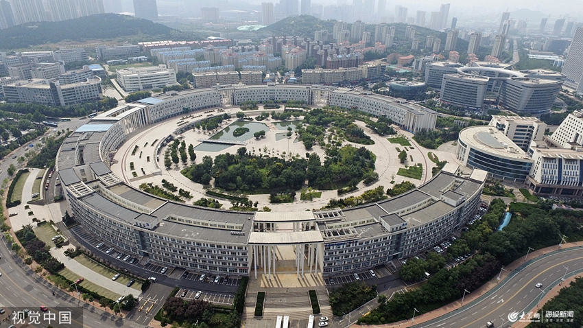 2017年9月9日,濟(jì)南,航拍齊魯軟件園大樓。 坐落于高新區(qū)的齊魯軟件園成立于1995年11月,1997年3月被國家科技部認(rèn)定為全國首批"國家火炬計劃軟件產(chǎn)業(yè)基地"。齊魯軟件園大樓外形非常奇特,呈圓環(huán)狀,酷似著名的蘋果公司總部大樓,是泉城濟(jì)南的地標(biāo)建筑之一。