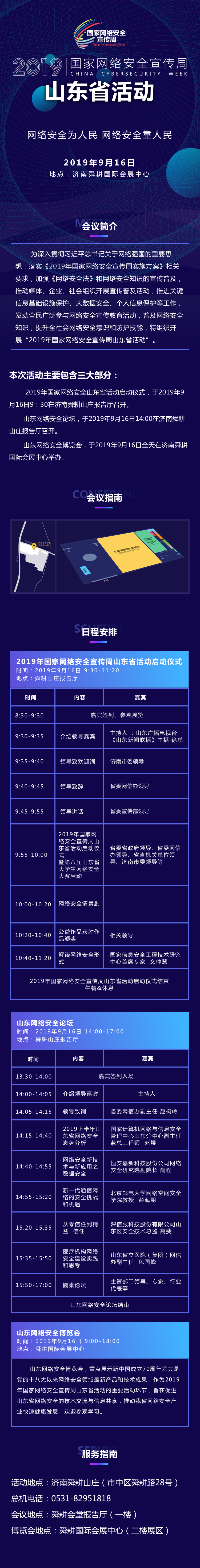 除網(wǎng)絡(luò)安全技能大賽、網(wǎng)絡(luò)安全論壇、網(wǎng)絡(luò)安全博覽會外,在山東省教育廳、省通信管理局、省公安廳、中國人民銀行濟南分行、團省委、省總工會、省婦聯(lián)等有關(guān)部門的參與和支持下,宣傳周期間,山東還將舉行校園日、電信日、法治日、金融日、青少年日、個人信息保護日,六個“主題日活動”。