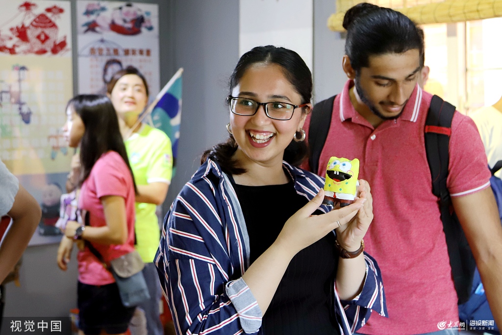 2019年8月4日,青島,來自香港油尖區(qū)的30余名學(xué)子來到青島西海岸新區(qū)山東非物質(zhì)文化遺產(chǎn)展示體驗(yàn)中心,體驗(yàn)剪紙、活字印刷、扎染等傳統(tǒng)非遺技藝。