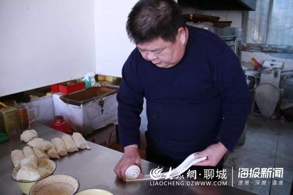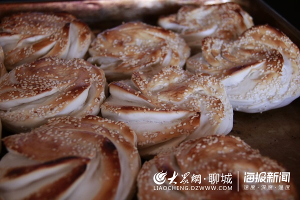 馬蹄燒餅的制作材料并不復(fù)雜,精選的魯西高筋小麥,甄選顆粒飽滿的芝麻,就可以制作馬蹄燒餅了。制作燒餅的第一道工序是和面,講究“死面”和發(fā)面適當(dāng)比例的和面調(diào)和,使其味道酥內(nèi)中不失勁道口感。如今燒餅的制作數(shù)量大,成師傅的燒餅已由最初的手工和面改為了機(jī)器和面。“機(jī)器和面更筋道一些,原來人工和面的時(shí)候,需要的時(shí)間長,人的力量也達(dá)不到機(jī)器的標(biāo)準(zhǔn),現(xiàn)在又省時(shí)口感又好”,成師傅告訴大眾網(wǎng)·海報(bào)新聞?dòng)浾撸F(xiàn)在每天能賣出去五六百個(gè)燒餅,忙得不亦樂乎。