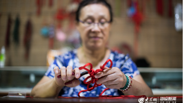 大眾網·海報新聞濟南8月11日訊(記者 畢勝 孫博洋)那時候還不到8歲,在幼兒園教手工課的姑姑回到家來也總會教我“幾招”。胡立華說,“那會兒不知道什么是中國結,只是從小喜歡做,有這個愛好。”胡立華是濟南結藝傳承人,濟南傳統手藝百工團的一員。她從小就喜歡做手工,2001年開始便專心投入到結藝這門手藝中來。