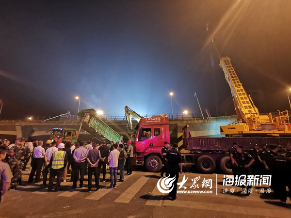 穿過警戒線,一路停滿各種救援車輛。11日凌晨,記者在橋面?zhèn)确仍F(xiàn)場看到,幾臺吊車和挖掘機(jī)正在緊張救援中。現(xiàn)場情況比較危險,記者在吊車下方看到上方不時有異物掉落,砸在施工車輛上,砰砰作響。