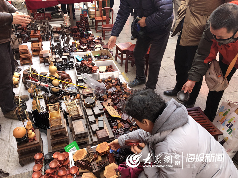 其實英雄山文化市場最有特色的,還數(shù)它的地攤文化。每逢節(jié)假日,四五百家地攤分列在市場兩側(cè),根雕木雕、工藝擺件、珠寶玉石等應用僅有。早在26日,記者就曾來感受過這場接地氣的文化盛宴。