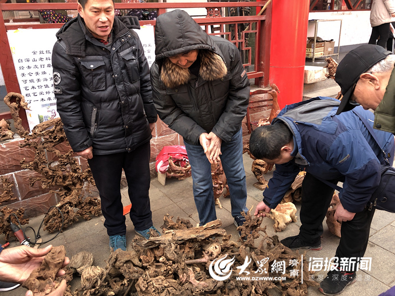 一個根雕攤位前,許多市民在挑選