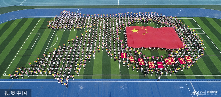 2019年6月14日,江蘇淮安天津路小學師生同唱《歌唱祖國》,慶祝新中國成立70周年。