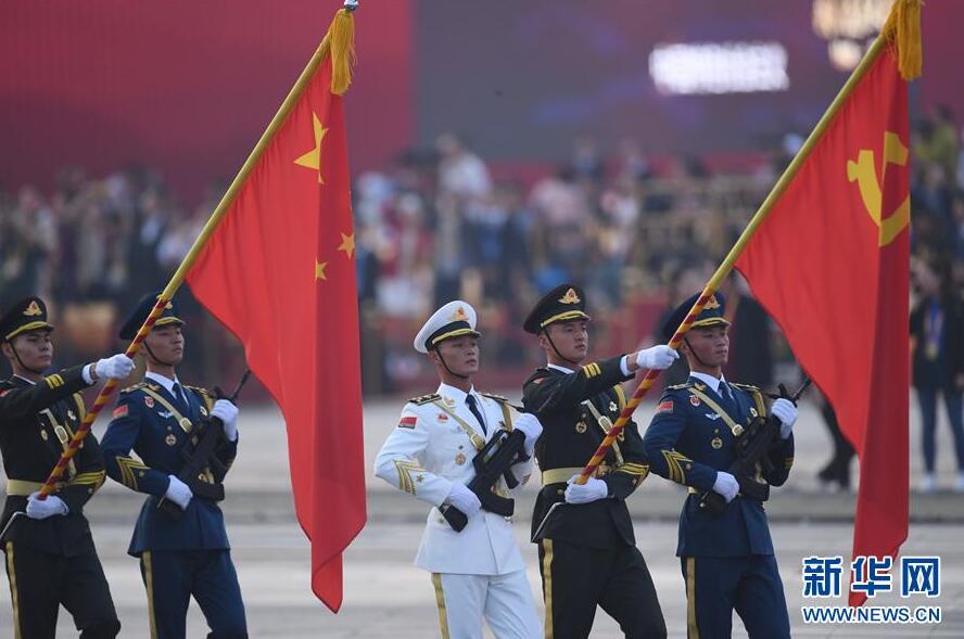 10月1日上午,慶祝中華人民共和國成立70周年大會在北京天安門廣場隆重舉行。這是儀仗隊在接受檢閱。 新華社記者 許暢 攝