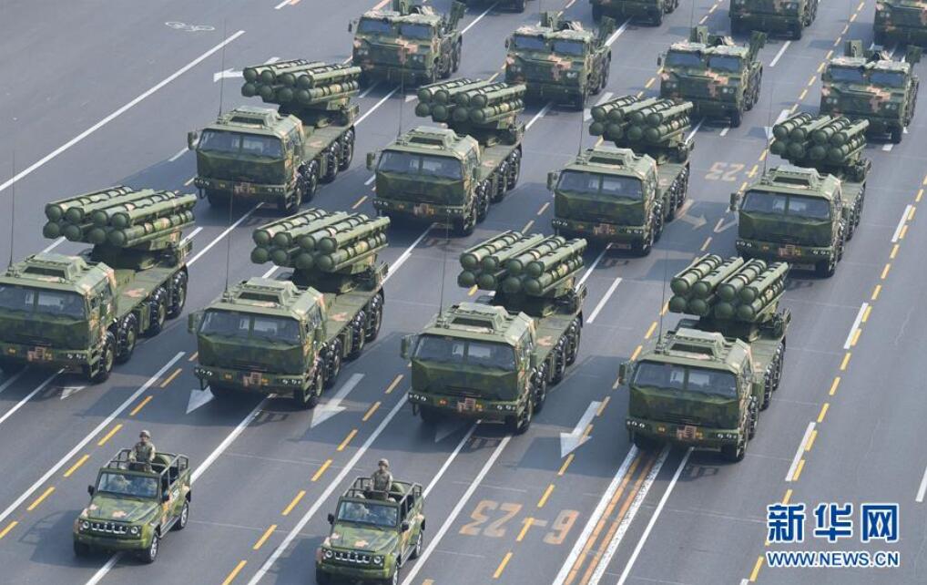 10月1日上午,慶祝中華人民共和國成立70周年大會在北京天安門廣場隆重舉行。 這是行進中的自行火炮方隊。 新華社記者 普布扎西 攝
