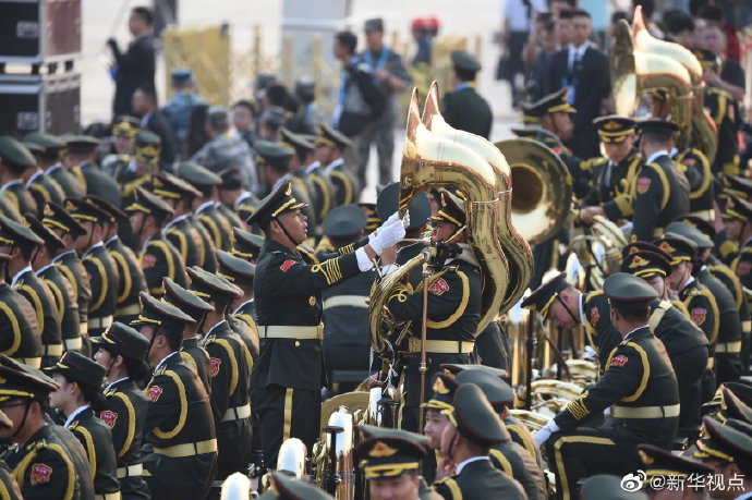 新中國閱兵史上最大規模軍樂團亮相國慶70周年慶祝活動現場