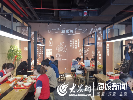 大眾網·海報新聞濟南11月16日訊(記者 梁雯 張建) 肥瘦相間、色澤金黃、長17到18厘米、厚1.2厘米、重約100克……每天,同樣口味、同樣重量的5萬塊把子肉,會從400多家超意興快餐門店里,進入山東人的飯碗。作為一家有著百年歷史的老字號餐飲連鎖店,超意興的“大米干飯把子肉”早已成為山東的特色飲食之一。超意興線下門店的日均客流量現在也已有十幾萬單。雖是老字號,超意興卻正變得越來越“新”,有了不少“新”變化、“新”發展。