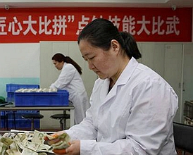 兩個多月后張雪娜找到了竅門,手速越來越快。據統計,從業這些年,她已累計清點零鈔3000萬元。 [詳細]