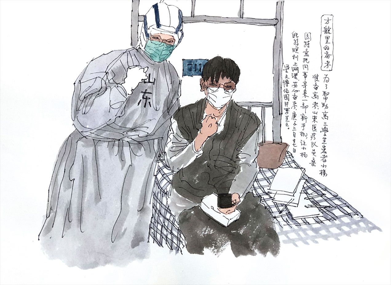 懷著對未知的忐忑,他和同事們做足了準備:每人手提一整套從山東帶過去的防護用品。如同出征前在醫(yī)院里把能想到的都帶上一樣。