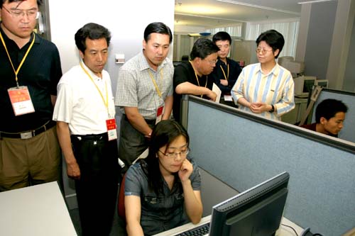 6月4日,甘肅省宣傳部長(zhǎng)培訓(xùn)班參觀大眾網(wǎng),圖為大眾網(wǎng)總編輯向來賓介紹網(wǎng)站情況。