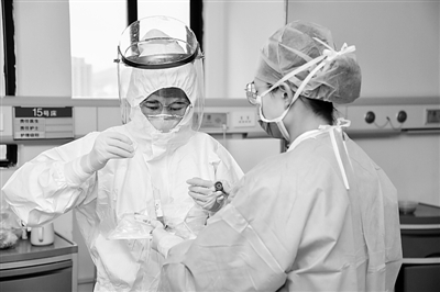 在江西省贛州市龍南縣第一人民醫院,醫務人員妥善收集疑似發熱病人的檢驗樣品。廖 斌攝