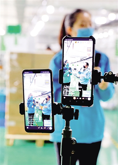 2月21日,四川省華鎣市“網上春風行動”走進企業(yè),通過直播平臺向網絡求職者介紹企業(yè)情況。周松林攝/光明圖片