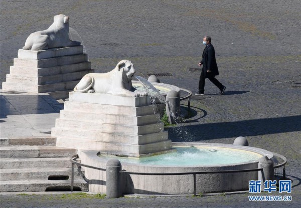 4月10日,在意大利首都羅馬,一名戴口罩的男子走過人民廣場。意大利累計新冠確診病例10日增至147577例,死亡病例18849例,治愈病例30455例。意總理孔特當天表示,原定4月13日結束的全國“封城”措施將延長到5月3日。 [詳細]