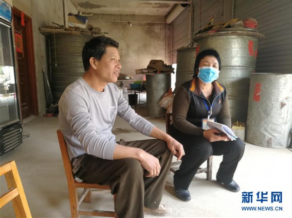 欽州市欽北區大寺鎮南間村第一書記黃境紅(右)到建檔立卡貧困戶黃秀加家走訪(2月22日攝)。 新華社記者 何偉 攝
