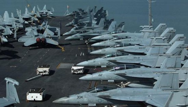 戰斗機停靠在航母飛行甲板上。(網頁截圖)