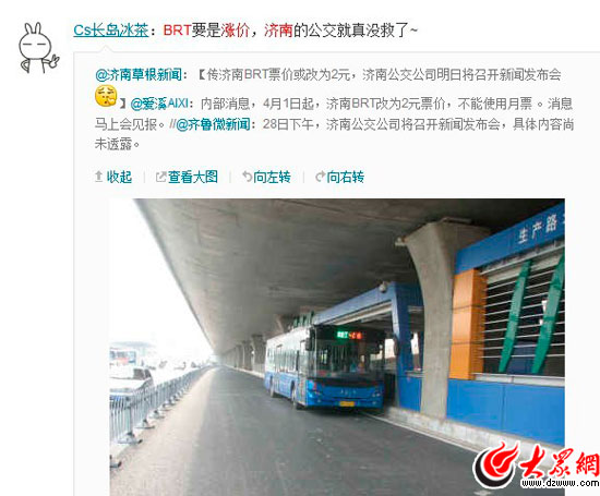 濟南公交稱BRT2元早有批復,下午將開新聞發布會