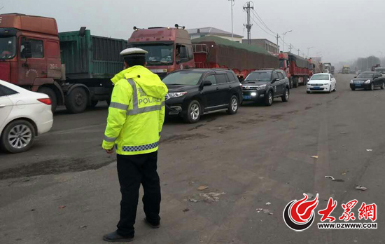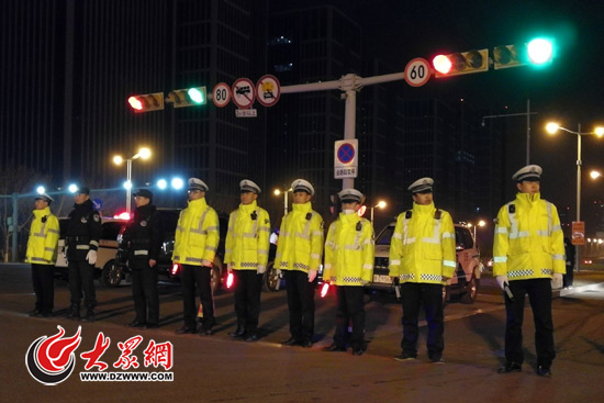 3月6日凌晨,山東省公安廳異地用警整治濟南渣土車違法,圖為淄博交警在經十鳳凰路口嚴陣以待。