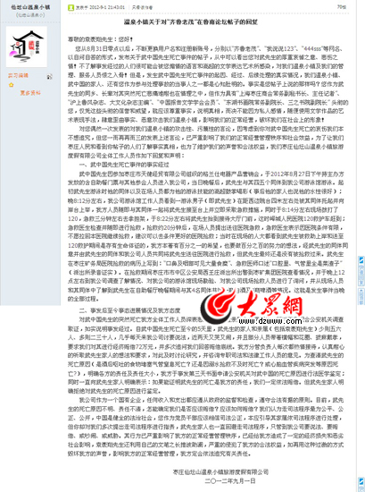 溫泉小鎮對“溺亡事件”的回復說明。(大眾論壇頁面截圖)