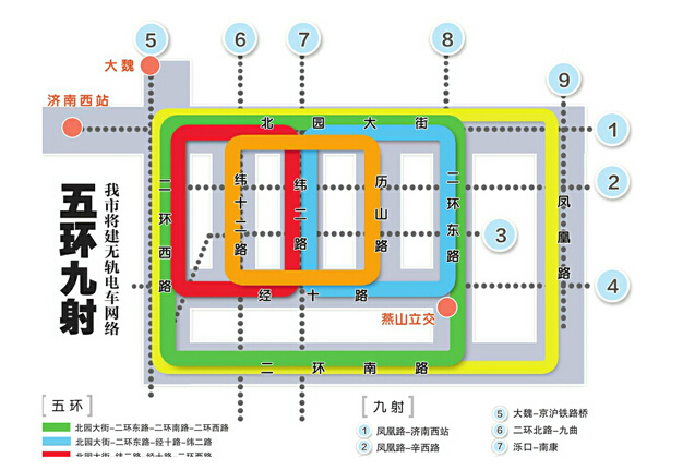 一條新的公交網:濟南2020年將建“五環九射”無軌電車網