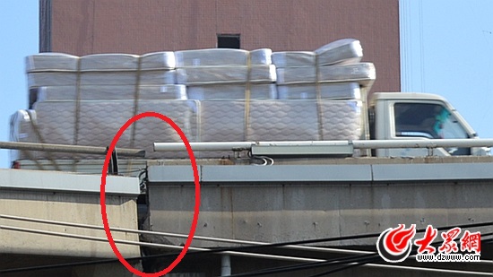 雖然從側面看“斷裂”明顯,但并不影響橋上路面和車輛通行。(記者 王宗陽 攝)
