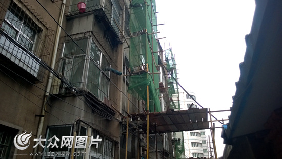 自10月11日山東濟(jì)南歷山東路2號“膠帶樓”開修至今已有10天時間。今天上午,大眾網(wǎng)記者采訪時發(fā)現(xiàn),目前該樓第一、第二單元已經(jīng)維修完畢,第三、第四單元正在做水泥窗欞拆除的收尾工作。
