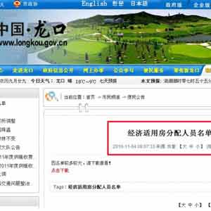 曝料:龍口經濟適用房多賣給公務員 當地否認
