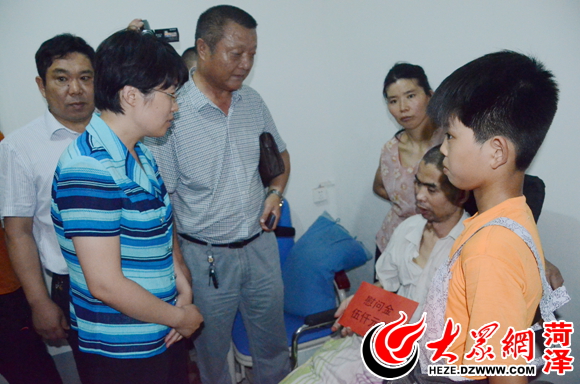 單縣副縣長蘇春英代表縣委、縣政府看望王書陽一家,并送來慰問金
