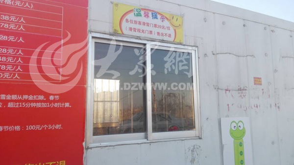 下午4:30左右,大眾網記者來到茶山滑雪場時,售票處已經關閉,售票處的窗戶還被用鋼筋別住。