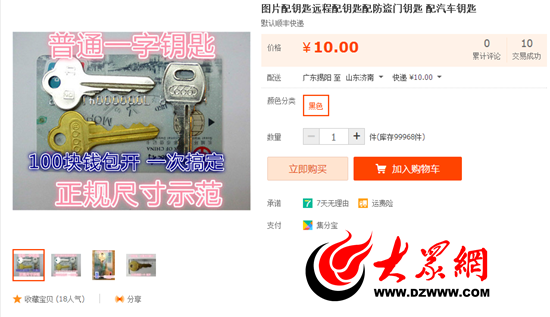 目前,淘寶上“遠(yuǎn)程配鑰匙”的店鋪很多,可以配的鑰匙種類應(yīng)有盡有,其中包括普通防盜門鑰匙、汽車鑰匙和摩托車鑰匙,價(jià)格也是從10元到600元不等。隨便拍一張照片,真的可以“復(fù)制”鑰匙開鎖?