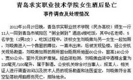 青島求實職業學院女生酒后墜亡 排除他殺可能