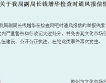 12月10日晚,有網友在大眾論壇發帖稱,山東膠州市文化執法局一副局長在巡查前向被檢查的網吧通風報信,帖子中上傳了近兩分鐘的視頻,公布該副局長發出的兩條...