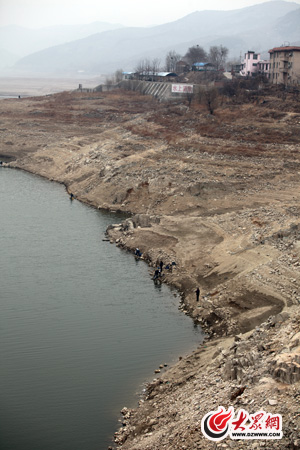 3月24日,記者在查訪南部山區水庫時發現,受濟南南部山區持續少雨的影響,南部山區另一“大水缸”錦繡川水庫庫容已跌至死庫容量以下,城市供水已停止1個多月,供水區40萬市民改喝黃河水。站在錦繡川水庫大壩之上向東望去,往日浩渺的水庫風采不見,南北兩岸巖石壁上明顯保留著水位退卻時的一條條水痕。在接近水面的庫灘上,坐著一位位垂釣者。水庫辦公室主任劉春平看著眼前的情景無奈地說:“水少了,游客比往年少了許多,但水淺時正是魚多好釣的時候,因此釣魚者也就多了。”... ...