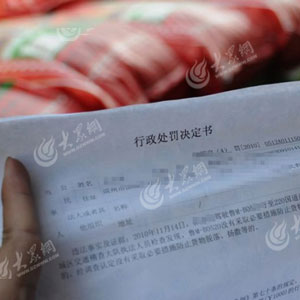 最無恥罰單:濱州交通局對一農用車開出800元罰單
