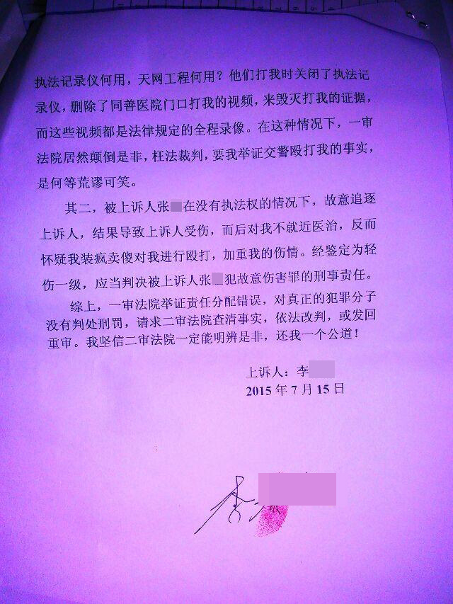□連續發帖控訴:遭交警暴力執法被毆打致殘