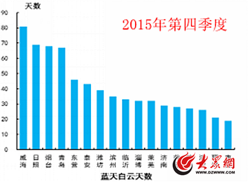2015年第四季度山東17市“藍繁”天數(shù)統(tǒng)計情況。