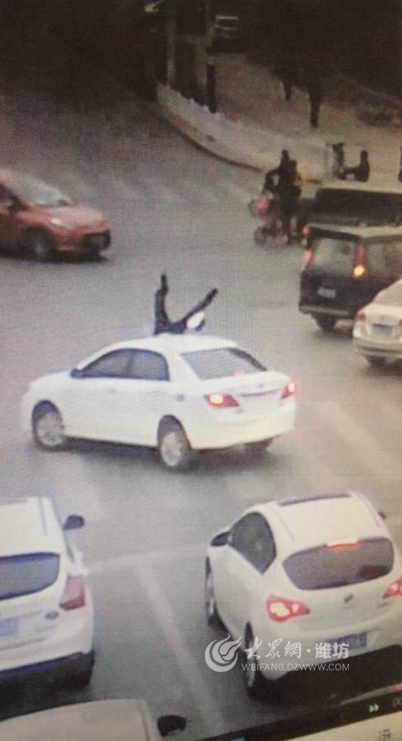 濰坊一白色比亞迪轎車連撞學生和交警后逃逸