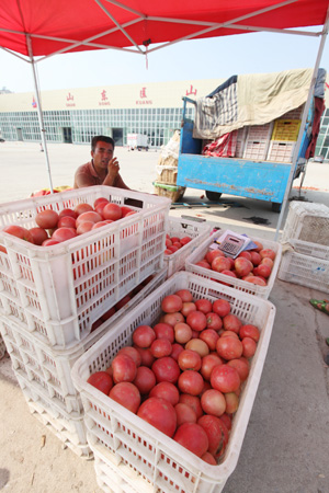 也就是說,當露地西紅柿大批量上市期間,僅匡山蔬菜批發市場一天就會外銷西紅柿15萬斤以上,這個數字還是保留數字。張廷祥說:“春天是西紅柿銷售旺季,來自濟陽、齊河等地大棚西紅柿集中到批發 市場大批量銷往全省各地。僅我們這一家一天就能銷售4000多斤。”這僅僅是匡山批發市場一個菜商的銷 售量,再加濟南市七里堡蔬菜批發市場,濟南市一天的西紅柿銷售量可想而知。