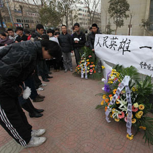 悼念:泰安市民自發(fā)組織悼念英雄民警