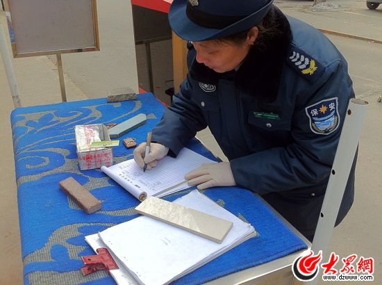 李紅梅在對(duì)進(jìn)出車輛進(jìn)行登記。