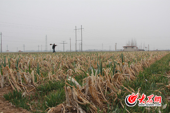 在章丘慶元村,村民們將大蔥刨出并捆好,準(zhǔn)備發(fā)往河南市場。