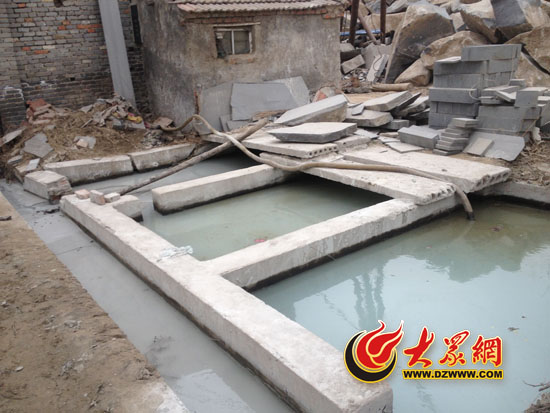 石材生產(chǎn)作坊院外的污水池。離水池不到一米的地方就是華山大溝。